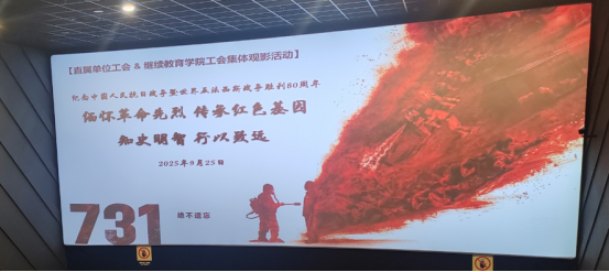 为纪念中国人民抗日战争暨世界反法西斯战争胜利80周年,深切缅怀革命先烈,传承伟大抗战精神,筑牢理想信念根基,9月25日下午,雷竞技ray官网分工会举办了“以史为鉴强信念,勿忘国耻勇前行”主题观影活动,组织全院教职工集中观看了爱国主义教育影片《731》。